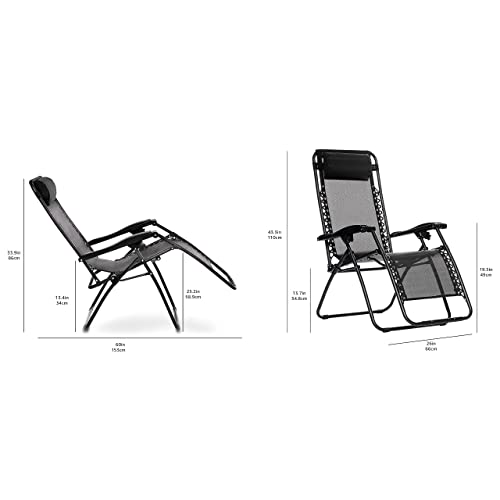 Amazon Basics Outside Textilene Adjustable Zero Gravity Folding Reclining Living room Chair with Pillow, Black