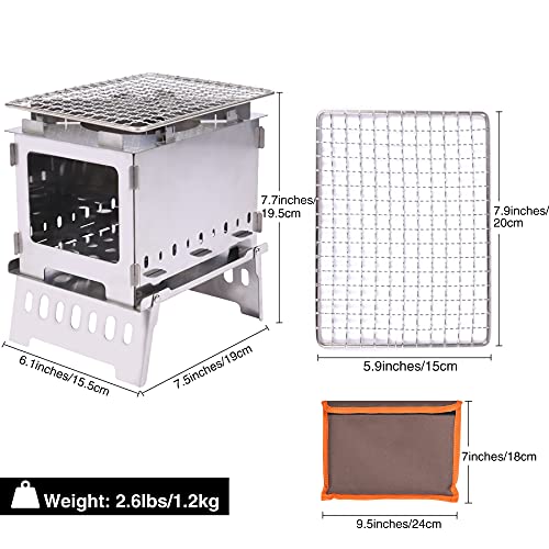 DURABLE &STABLE: Lineslife wood camp stove is made of high quality 430 stainless steel, which is corrosion resistant and durable. Equipped with a girll grid to provide convenience to BBQ and cooking. With its sturdy and stable structure, it can last for a long time.