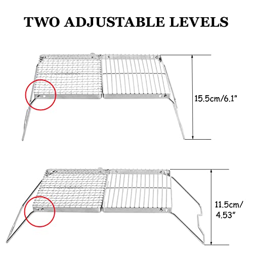SPECIAL DESIGN: The pack grill is designed specially to be divided into two parts: Woven Mesh、Stripe Grate. Two adjustable levels,you can choose perfect grill rack height above your fire. Refer to figure 3.